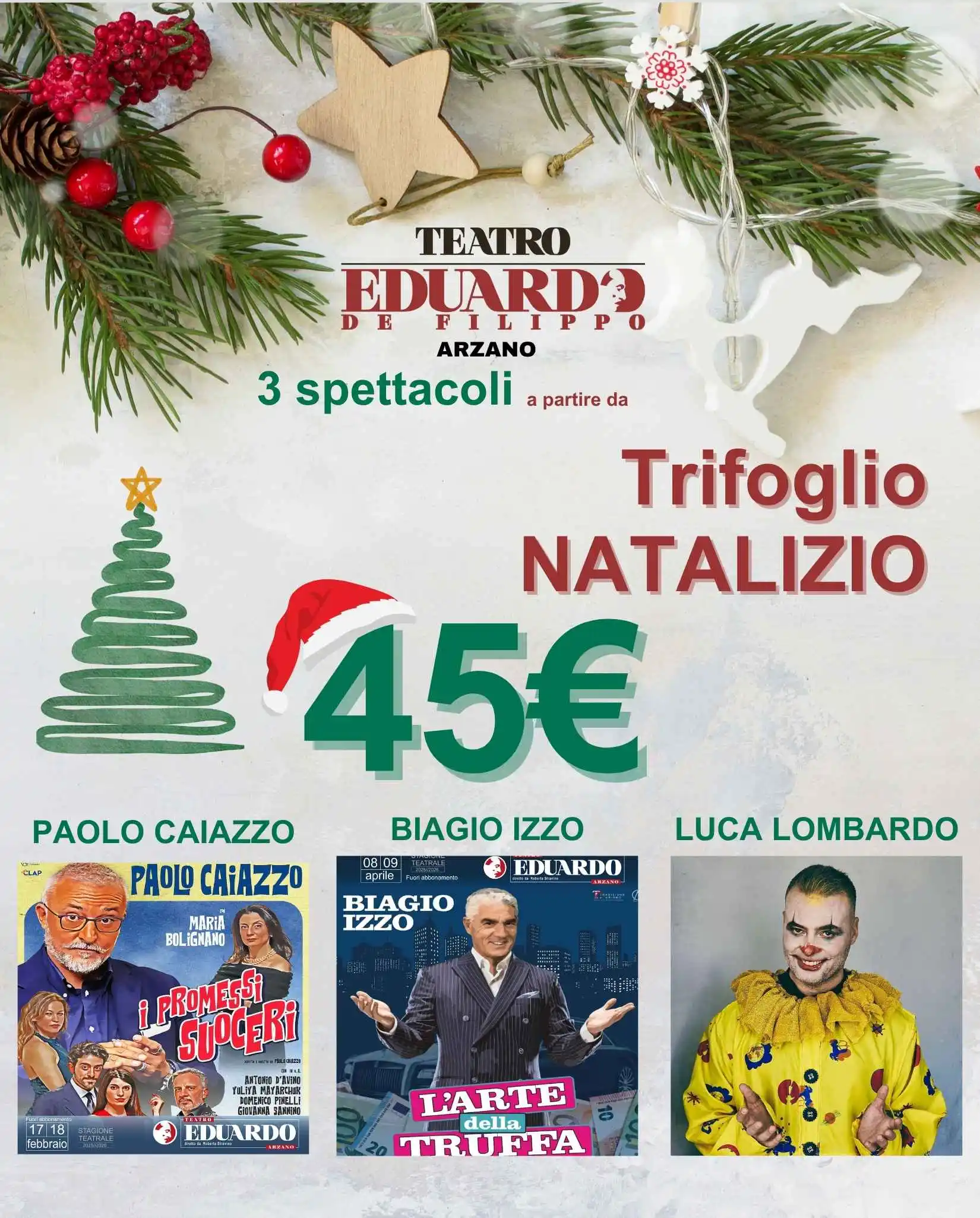 Il Teatro Eduardo de Filippo comunicherà eventuali variazioni di programma attraverso il proprio sito internet www.teatroeduardo.it In caso di variazione del programma dello spettacolo, il biglietto acquistato è da considerarsi valido anche per lo svolgimento dello spettacolo nel nuovo luogo e/o data e/o ora. In tal caso non si avrà diritto ad alcun rimborso del prezzo del biglietto.